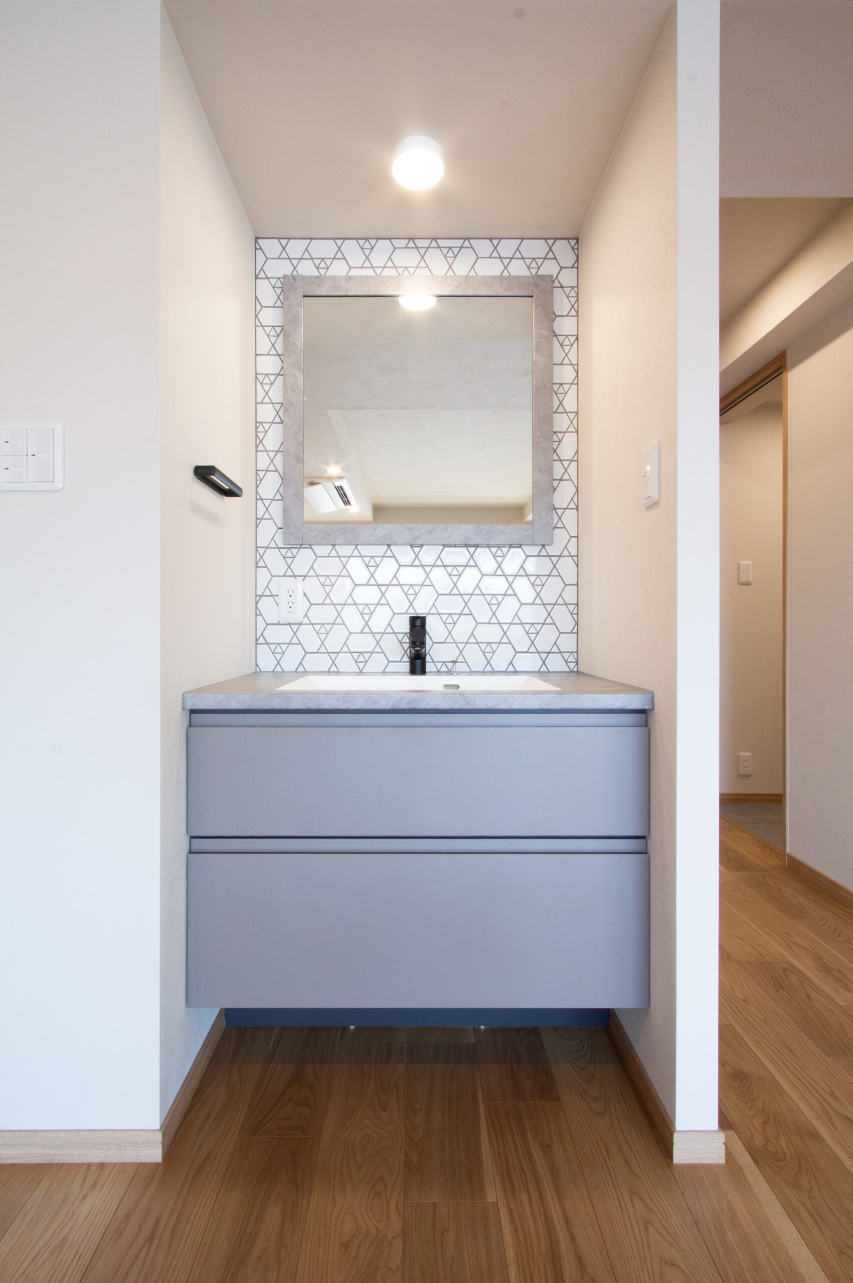 こんにちは!Alexの三國です。 急に冷え込み始めましたが、皆様の体調に変化はないでしょうか。 セカンド洗面台の事例をご紹介します。 オーダー家具で制作したような見た目の洗面台です。 こちらは、アイカ工業のスマートサニタリーシリーズを使用しています。 スマートサニタリーシリーズは扉やカウンターの組み合わせを豊富な色柄や材質の中からご選択いただけます。 フレームミラー背面は躍動感あふれる多角形タイルで仕上げています。 セカンド洗面台のご提案も可能ですので、是非お気軽にご相談ください! ↓ALEXの豊富な施工実例はこちらから↓ https://cosmodog.jp/gallery/