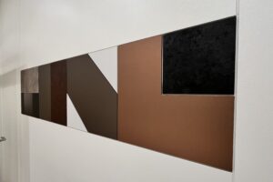 同じ色でも生じる色差が空間に立体感を醸し出していて、書斎やウォークインクローゼットに使ったらとても素敵になりそうでした。