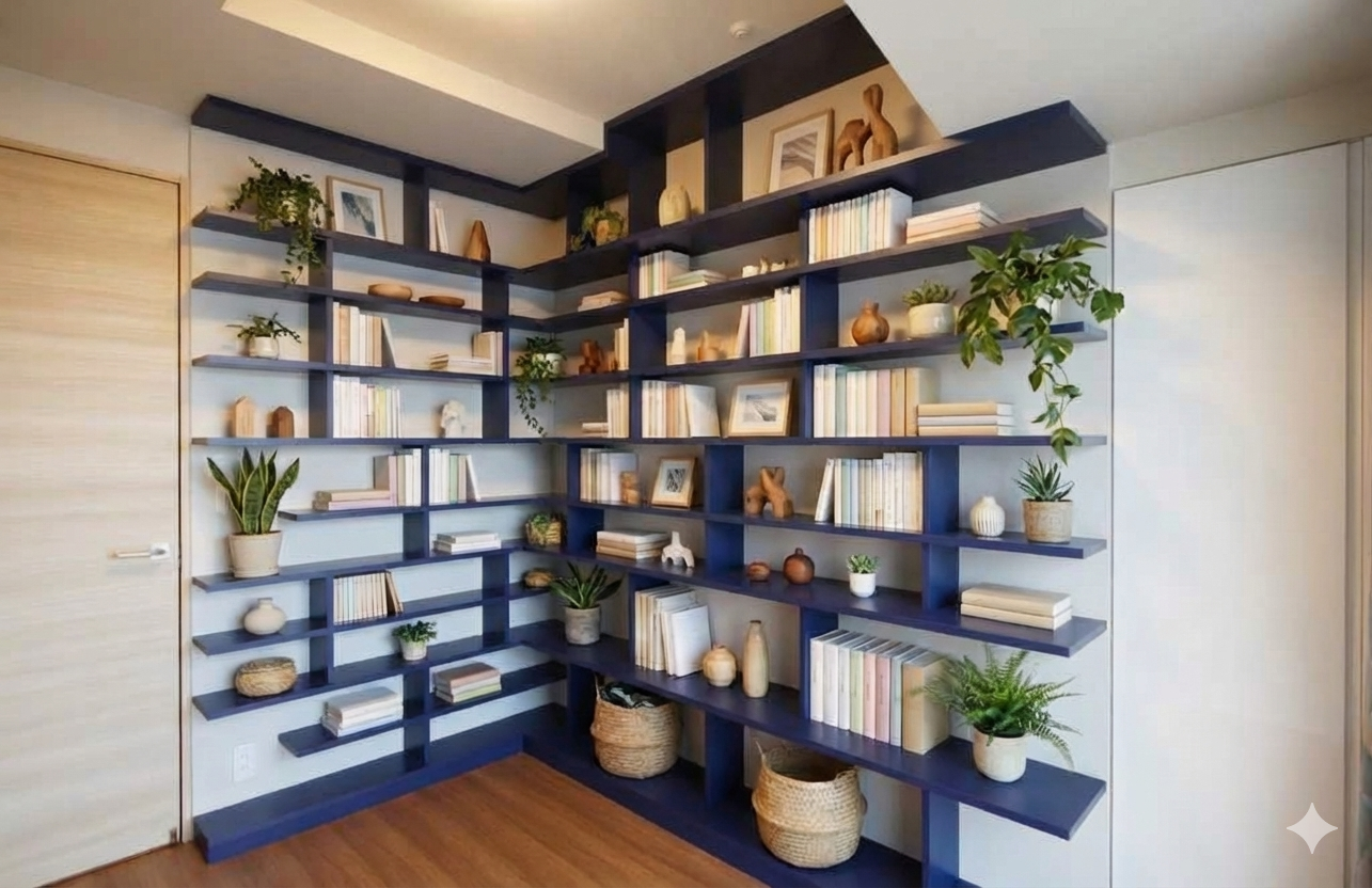 こんにちは。ALEX 大石です。 新築マンションをご購入されたお客様から書棚造作のご相談を承りました。 当初既製品でご検討されておりましたが、制約も多く諦めかけていたところ ホームページをご覧になられてご連絡をいただきました。 梁などを避けつつL型の壁面を目一杯利用してご提案させていただきました。 棚板の奥行きも段によって変更し圧迫感が出ないように両サイドの棚板を設けない こだわりの仕様です。 ↓ALEXの豊富な施工実例はこちらから↓ https://cosmodog.jp/gallery/